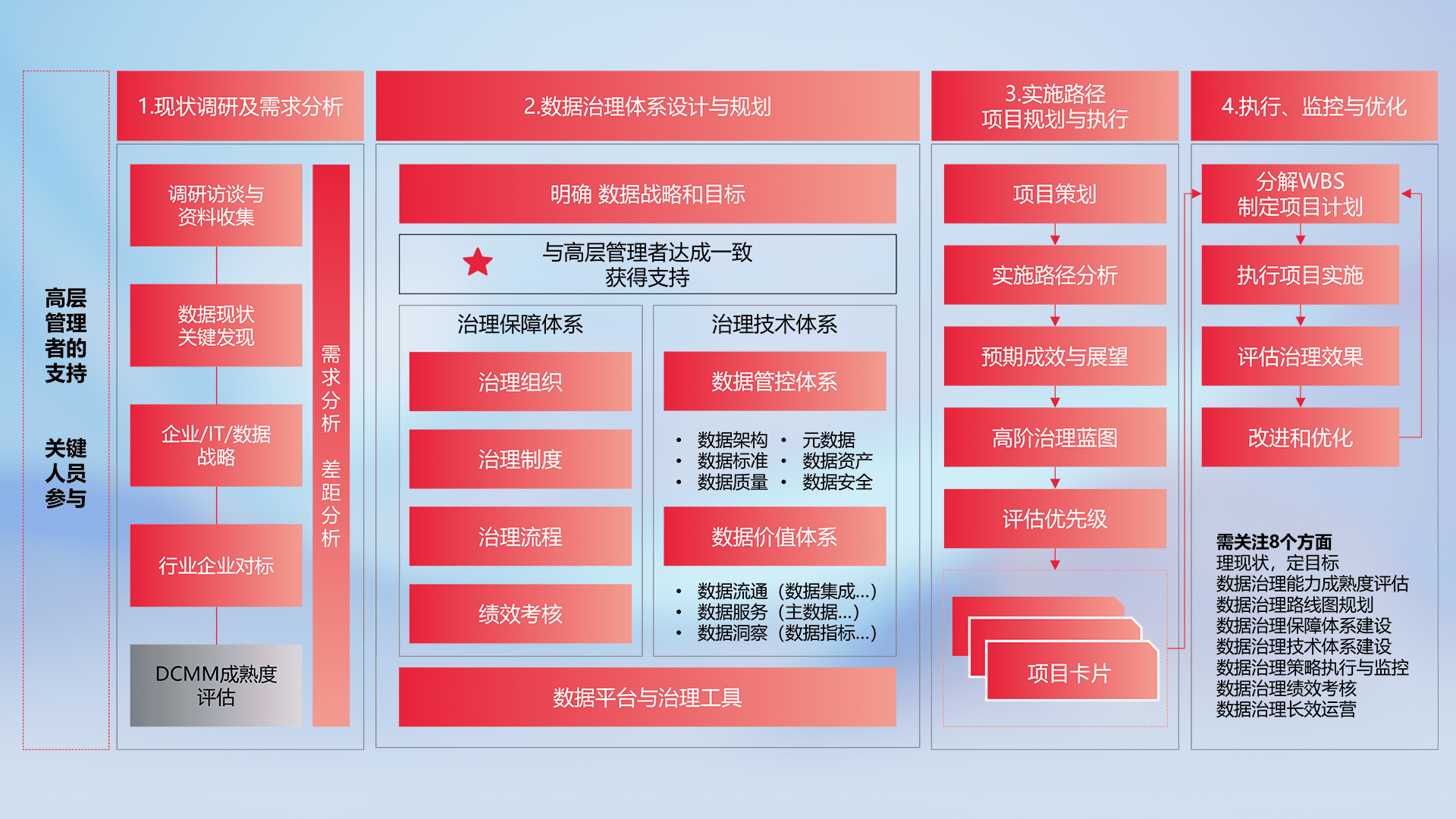 制定并执行统一的数据标准,,规范数据定义和格式,,,消除冗余和不一致性,,,,实现跨部门和跨系统的数据一致性,,,为企业提供标准化的数据基础。。。